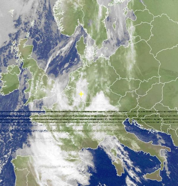 Weiterhin ziehen Wolken über den Himmel Mitteleuropas her. Diese Wolken führen milde Meeresluft nach Deutschland. Regen fällt daraus kaum noch. Über Spanien und Frankreich regnet es dagegen stark, Über Italien herrscht dagegen teilweise sonniges und warmes Wetter.