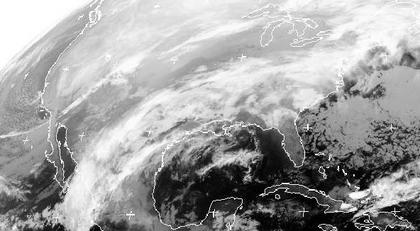 Von Norden ist kalte Luft in den Westen und die zentralen Teile der USA geströmt. An der Luftmassengrenze zur wärmeren Luft im Südosten und am Golf von Mexiko sind Regenwolken entstanden, die sich von Mexiko bis nach Neuengland erstrecken. Mit der weiteren Entwicklung eines Tiefs über der Mitte der USA kommt es morgen zu einer Verstärkung der Niederschläge. (Bildquelle: NERC Satellite Receiving Station, Dundee University, Scotland, http://www.sat.dundee.ac.uk/)