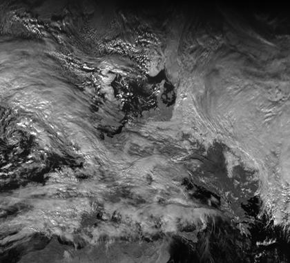 Auf der Rückseite der Ausläufer von Tief 'Zephyrinus', die über Deutschland nach Osten und Süden abziehen, erkennt man in Norddeutschland eine größere Wolkenlücke. Über der Nordsee haben sich nur ein paar lockere Quellwolken gebildet, die vereinzelt auch Schauer bringen. Zu beachten sind jedoch die Wolken, die von Südwesteuropa nach Deutschland ziehen. Sie gehören schon zum neuen Tief 'Angelos' übder dem Atlantik.