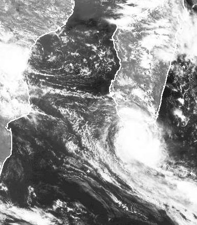 Vor der Südspitze von Madagaskar liegt der Zyklon 'Favio' mit mittleren Windgeschwindigkeiten bei 110 km/h und Böen bis 140 km/h. Er zieht weiter nach Westen auf die Straße von Mosambik, möglicherweise in den nächsten Tagen auch bis zur Küste von Mosambik. (Bildquelle: NERC Satellite Receiving Station, Dundee University, Scotland, http://www.sat.dundee.ac.uk/)