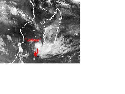 Auf dem Satellitenbild von Mittwoch früh ist der tropische Wirbelsturm 'Jokwe' südlich von Madagaskar gut zu erkennen. Es hat sich bereits etwas an Kraft verloren und erreicht zurzeit mittlere Windgeschwindigkeiten von 130, in Böen 158 km/h. Berechnungen zufolge soll sich 'Jokwe' weiter abschwächen und sich langsam Richtung Südenwesten verlagern. Sein Endziel ist allerdings noch unklar. (Bildquelle: NERC Satellite Receiving Station, Dundee University, Scotland, http://www.sat.dundee.ac.uk/)