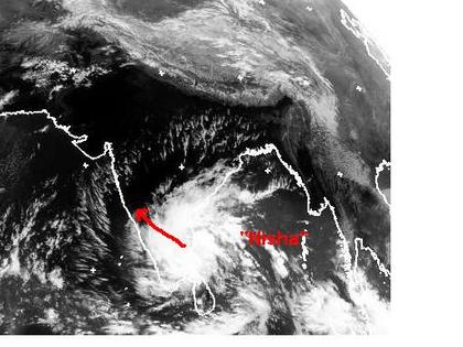 Zyklon 'Nisha' über Südindien zieht nach Nordwesten