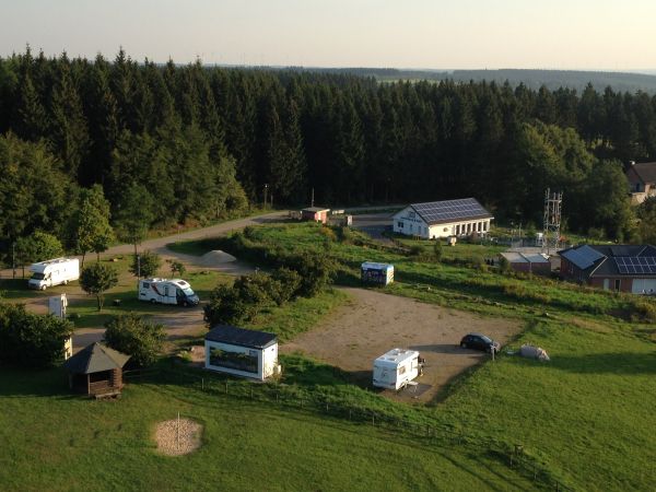 In herrlichem Eifelpanorama lässt es sich hier mit Fahrzeug und Zelt bzw. mit Wohnmobil /Kastenwagen campieren und ungestört die Sterne beobachten (Strom inklusive).