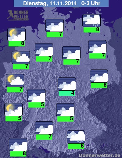 In weiten der Teilen der Nord- und Osthälfte ist mit Nebelbildung zu rechnen, im Westen und Südwesten zeigt sich der Himmel locker oder wechselnd bewölkt.