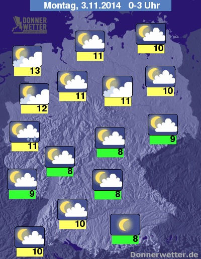 Vor allem Sternengucker in der Nord- und Westhälfte dürfen sich in der kommenden Nacht auf einen sternenklaren Himmel freuen. Im Südosten verdeckt leichte Bewölkung dagegen häufig die Sicht. Frieren muss jedoch keiner: Die Nachttemperaturen bleiben mit Werten um 12 bis 6 Grad sehr mild.
