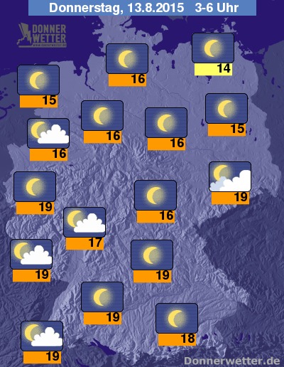 Nicht nur der Himmel zeigt sich über weiten Teilen klar, sondern auch die Temperaturen bewegen sich mit Tiefstwerten um 19 bis 14 Grad auf einem angenehmen Level.