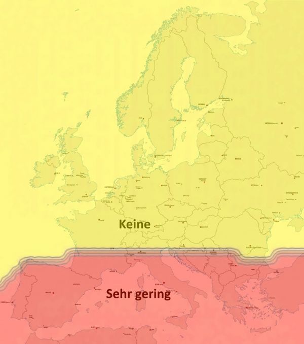 Die Karte zeigt die durchschnittliche, europaweite Belastung durch Hundezecken bis zum 25.01.2017: