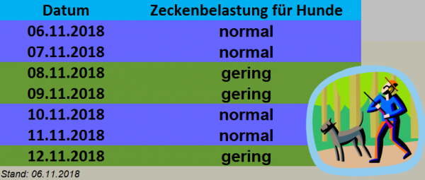 Kaum noch Zeckenbelastungen in dieser Woche.