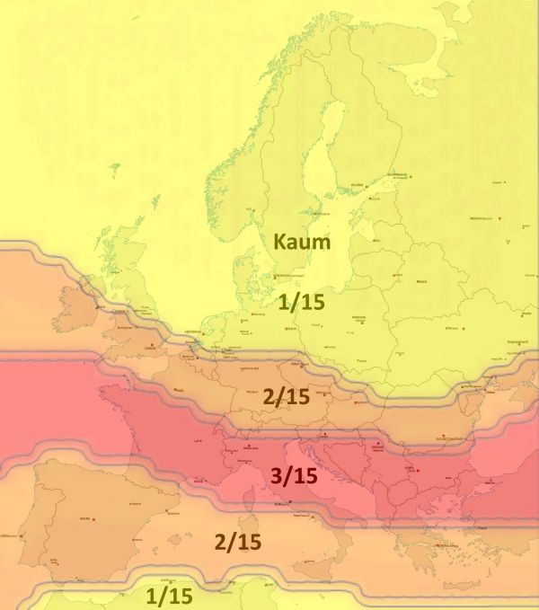 Die Karte zeigt die durchschnittliche, europaweite Belastung durch Hundezecken (Anzahl in 15 Minuten) bis zum 23.11.2016.