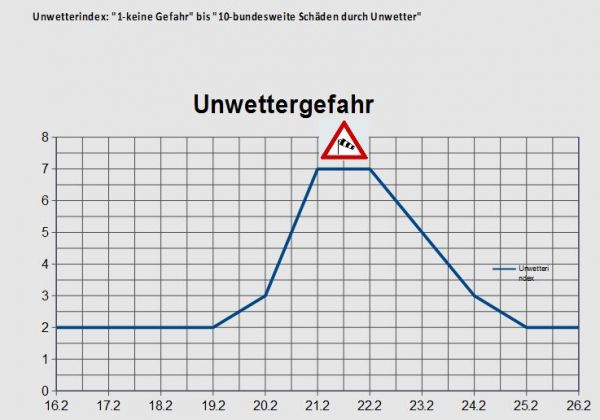 Für die nächste Woche erwarten wir in Deutschland überwiegend trockenes, ruhiges und häufig auch freundliches Wetter. Dazu steigen die Temperaturen vielerorts schon auf vorfrühlingshafte Temperaturen von bis zu 10 Grad oder sogar leicht darüber hinaus. Zum Wochenende kündigt sich nach den jetzigen Modellläufen im Norden ein Sturm an, wobei an den Küsten und auf den norddeutschen Mittelgebirgen mit möglichen orkanartigen Böen zu rechnen ist. Durch den langen Zeitraum bis zum nächsten Wochenende können sich die Prognosemodelle natürlich noch ändern. Nach Durchzug des Sturmtiefs stehen die Zeichen wiederum auf ruhigem und trockenem Hochdruckwetter.