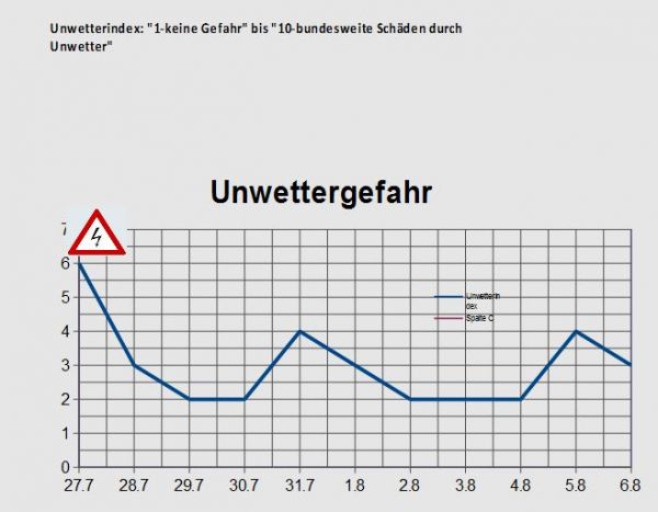 Beim Start in die neue Wetterwoche zeigen die derzeitigen Modellläufe den Durchzug eines atlantischen Tiefausläufers, dabei sind verbreitet kräftige Schauer und Gewitter möglich. Im weiteren Verlauf beruhigt sich das Wetter jedoch rasch wieder und die Unwettergefahr bleibt auf einem niedrigen und nur vorübergehend auch mäßigem Niveau.