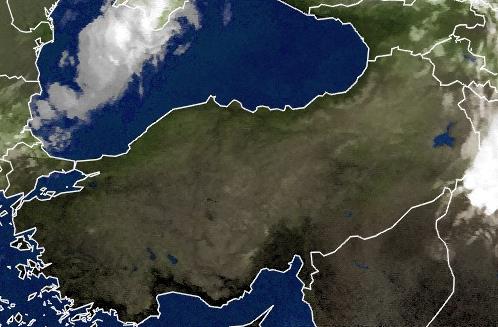 Satellitenbild der Region. Im Osten Türkei/Irak ist noch ein Wolkenklopps zu sehen. Sonst ist der Staub in diesem Bild kaum auszumachen. Während des Gewitters mit Staubsturm gab es auch militärische Aktionen.