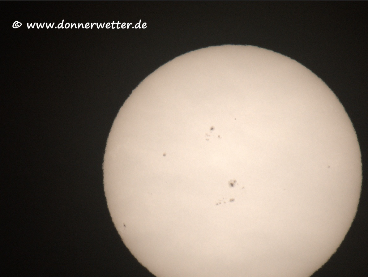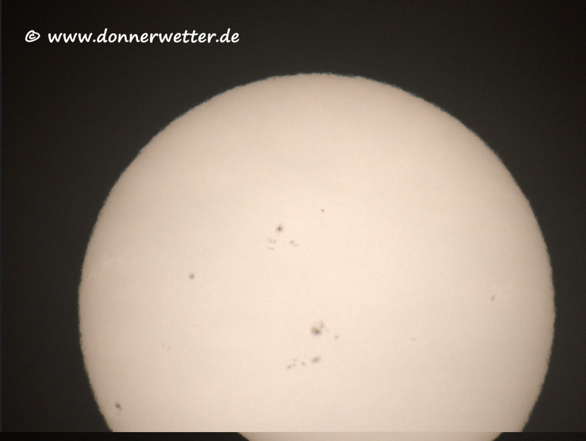 Diese Videoausschnitte, entstanden heute Vormittag, zeigen die aktuelle Sonnenoberfläche, auf der eine ungewöhnlich hohe Anzahl an Sonnenflecken sichtbar ist.