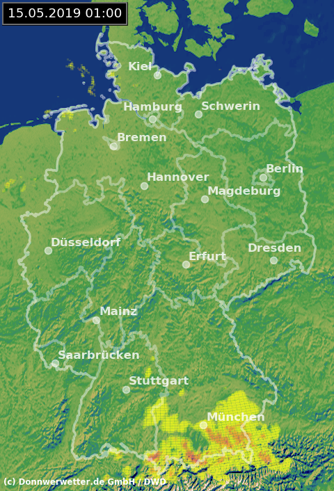Radarbild von Mittwoch, 15.05.2019 um 01.00 Uhr