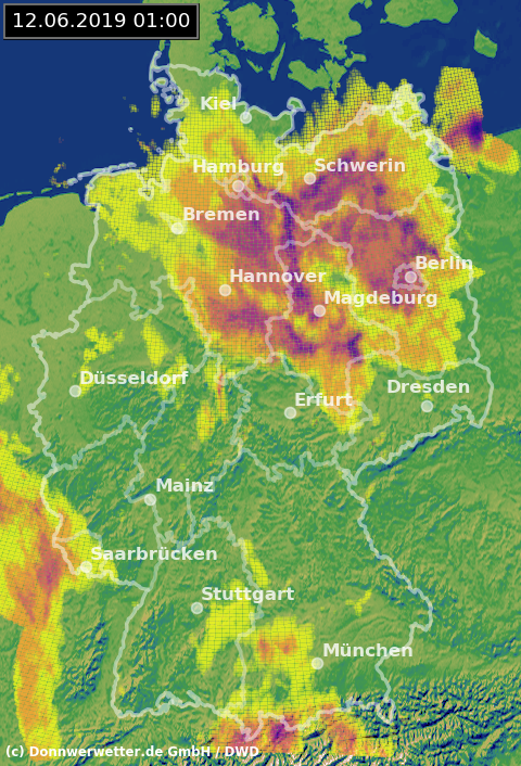 Radarbild von Mittwoch, 12.06.2019 um 01.00 Uhr