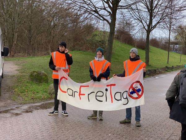 Der Karfreitag ist ein strenger Abstinenztag, der Carfreitag soll es ebenso sein: Prominent vor einer großen Gesamtschule im Bonner Osten ruft die Initiative Rad Entscheid Bonn daher an mindestens einem Freitag monatlich dazu auf, das Auto für zumindest einen Tag im Monat stehen zu lassen - stattdessen auf das Fahrrad oder der ÖPNV umzusteigen.