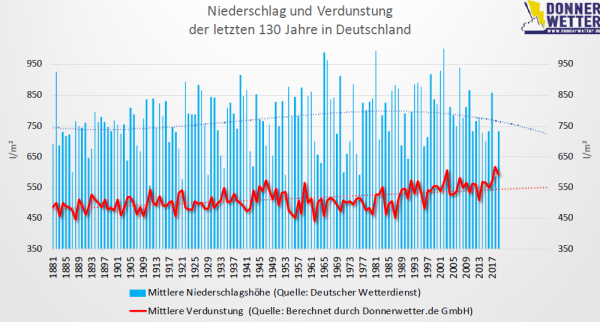 Niederschlag und Verdunstung zwischen 1881 und 2019 - setzt sich der Trend fort, besteht Anlass zur Sorge.