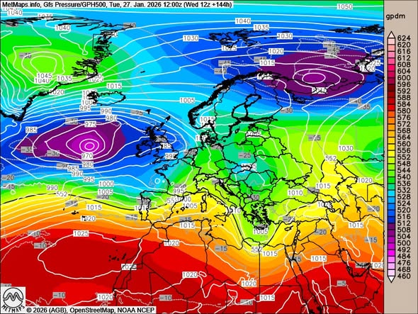 Einige Wettermodelle hatten zuletzt für die kommende Woche eine rasche Milderung angedeutet: Im Raum stand dabei das Szenario eines sogenannten „Bombenzyklons“ über dem Atlantik eines extrem schnell erstarkenden Tiefdrucksystems, das milde Luft nach Mitteleuropa führen könnte. Die neueren Modellläufe bestätigen dieses Szenario derzeit jedoch nicht eindeutig.