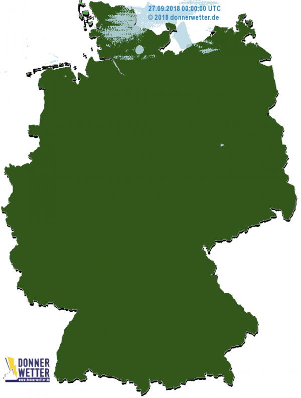 Das Radarbild zeigt aktuell eine schmale Zone mit schwachen Signalen, die von der Ostsee bis westlich nach Bremen reicht. Sie gehört zu der schwachen Kaltfront, die den Norden unseres Landes erreicht hat. In diesem Bereich fällt etwas Regen oder Sprühregen. Sonst präsentiert sich der Himmel ganz im Norden Deutschlands meistens wolkenverhangen, im übrigen Bereich verbreitet sternenklar oder nur gering bewölkt.