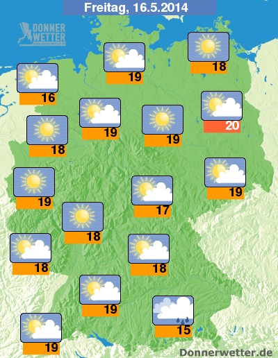 Zum Freitag hin pendeln sich die Temperaturen dann wieder ein: Mit Höchstwerten um 15 Grad am Alpenrand und bis 21 Grad im Osten wird es überall merklich wärmer. Regen gibt es kaum, dafür einen Mix aus Sonne und lockeren Wolken, im Nordosten sowie entlang des Rheins sind sogar längere sonnige Abschnitte möglich.