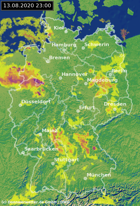 Radarbild von Donnerstag, 13.08.2020 um 23.00 Uhr