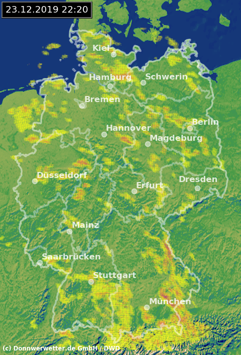 Radarbild von Montag, 23.12.2019 um 22.20 Uhr