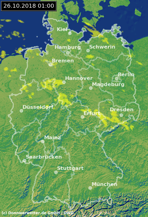 Heute zieht im Tagesverlauf von der Nordsee neuer Regen auf, der bis zum späten Abend weiter landeinwärts vorankommt, sich dabei jedoch abschwächt. Die Niederschlagsmengen liegen dabei verbreitet zwischen 1 und 15 Liter pro Quadratmeter. Sonst bleibt es jedoch meistens niederschlagsfrei.