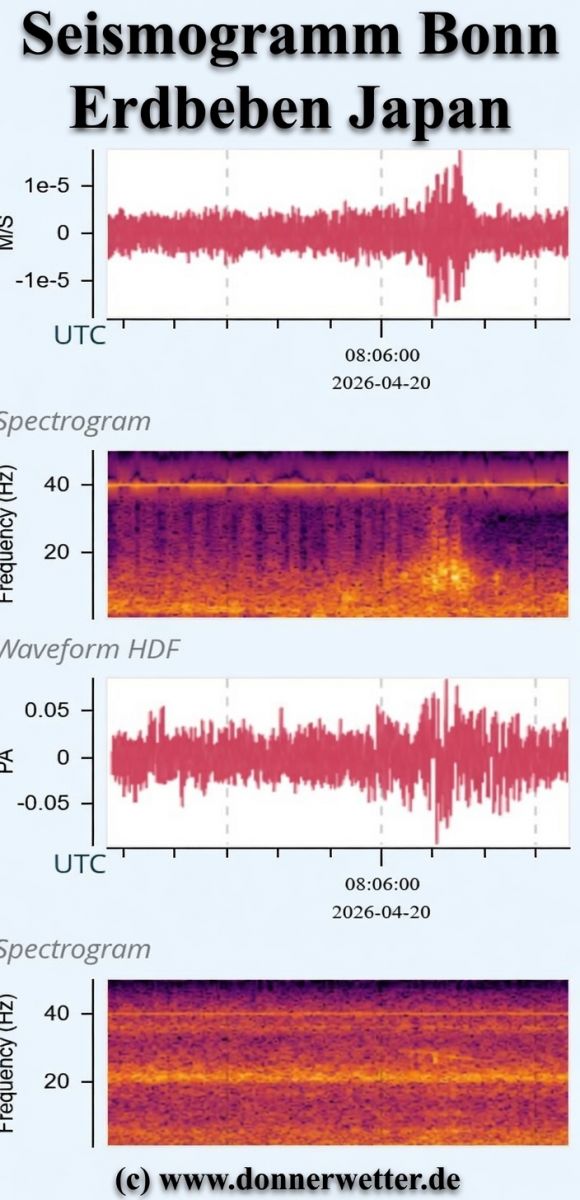 Auch das Spektrogramm unseres Erdbebensensors in Bonn konnte die Erschütterungen aufzeichnen: