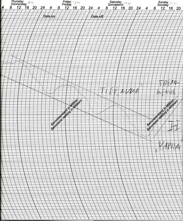 Nach einigen grauen und nassen Tagen übernimmt nun Hoch "Yaprak" die Wetterregie, Tief "Numa" verliert an Einfluss. Die Luftdruck-Trendwende gab es, wie auch schön auf unserem Luftdruckschrieb zu erkennen ist, bereits am gestrigen Sonntag.