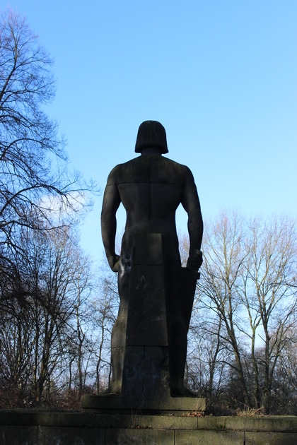 Auf unserem Bild ist 'Siegfried' in der Wintersonne von heute Nachmittag im Rheinland zu erkennen. Nazis schufen dieses Denkmal, um an den ersten Weltkrieg 1914 auf ihre Art zu erinnern. Die Erhöhung des Kampfbereiten Siegfried wirkt heute lächerlich.