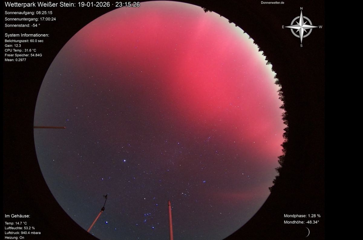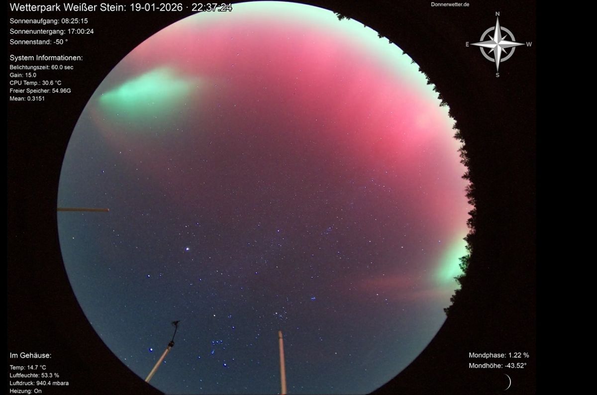 Polarlichter sind in Deutschland eine eher seltene Erscheinung - am späten Montagabend zeigten sich Aurora borealis, wie Polarlichter wissenschaftlich heißen, aber äußerst eindrucksvoll in vielen Regionen des Landes - so auch über dem donnerwetter.de-Wetterpark auf dem Weißen Stein.