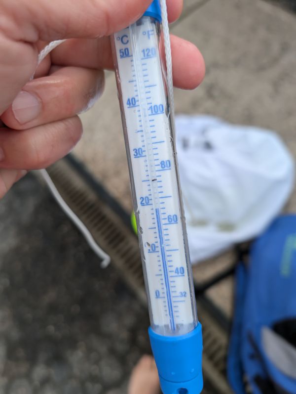 Und tatsächlich: Auf frühherbstliche 18, mit viel Wohlwollen vielleicht 19 Grad, pendelte sich das Wasserthermometer am Morgen ein. Igitt!