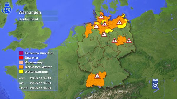 In den nächsten Stunden drohen weitere Gewitter und Schauer im Norden. In der Mitte gibt es Dauerregen.