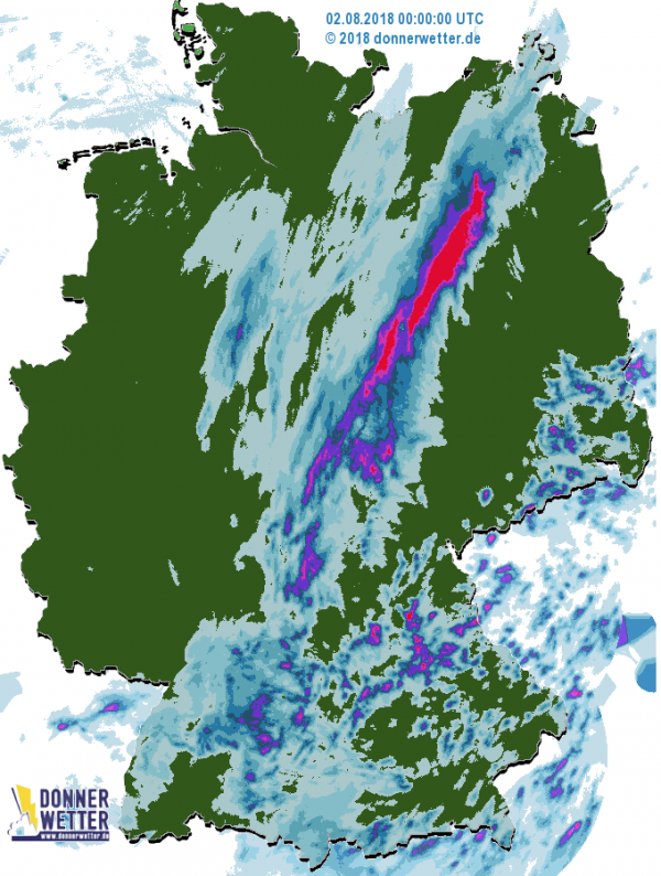 Gestern gab es in Ostdeutschland und in Bayern einzelne Gewitter, die gut im Regenradar zu erkennen sind. Im Westen und Norden blieb es trocken. Heute ist es wieder weitgehend trocken.