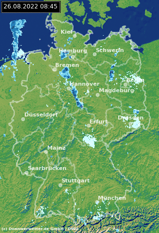 Etwas intensivere Niederschläge begleiten uns über den Nachmittag und Abend von Hamburg über Hannover, Magdeburg bis runter zum Thüringer Wald und dem Erzgebirge. Auch in Brandenburg kann es nass werden.
