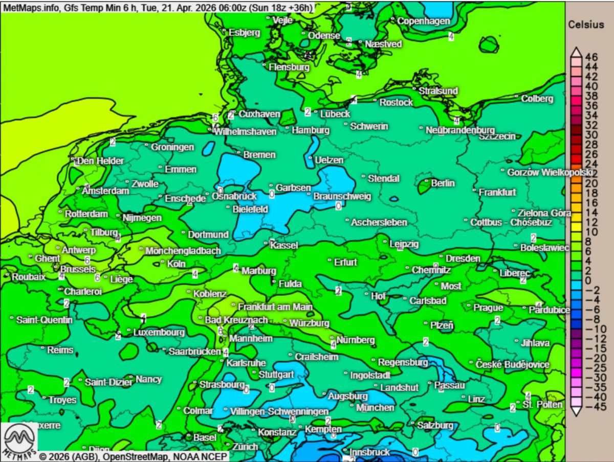 Tiefstwerte Deutschland 21.04.2026