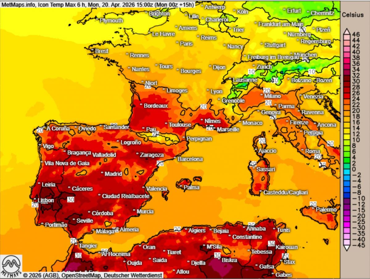 Spitzentemperaturen Spanien 20.04.2026
