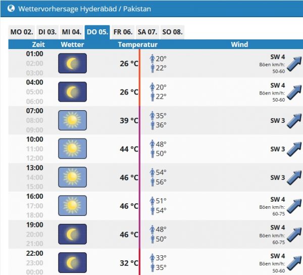 Indien und Pakistan ächzen aktuell unter einer extremen Hitzewelle: Höchsttemperaturen von 45 bis 47 Grad verzeichneten viele Stationen in der letzten Woche. Einzelne Stationen verzeichneten gar Werte knapp unter 48 Grad.