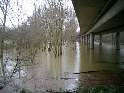Die Sieg hat bei Bonn die umliegenden Felder überflutet. Fotos vom Montag, 14. Februar 2005: