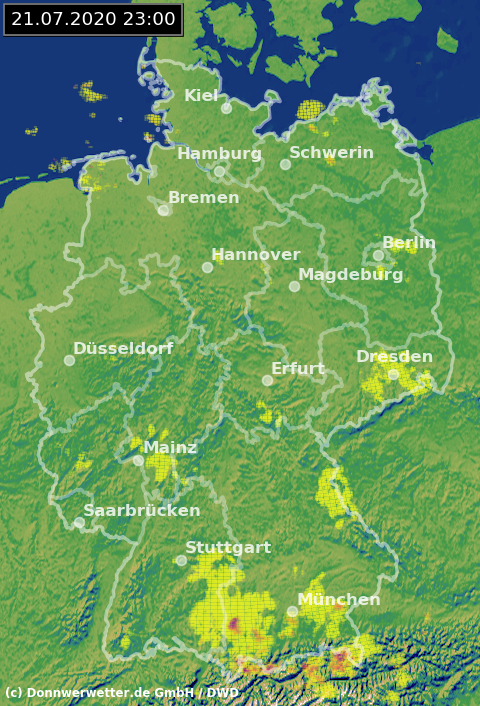 Radarbild von Dienstag, 22.07.2020 um 23.00 Uhr