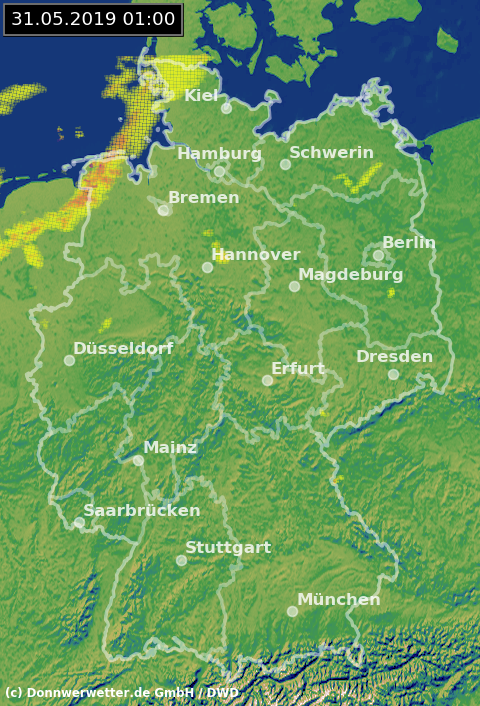 Radarbild von Freitag, 31.05.2019 um 01.00 Uhr