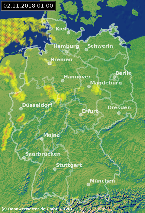 Radarbild von Freitag, 02.11.2018 um 01.00 Uhr