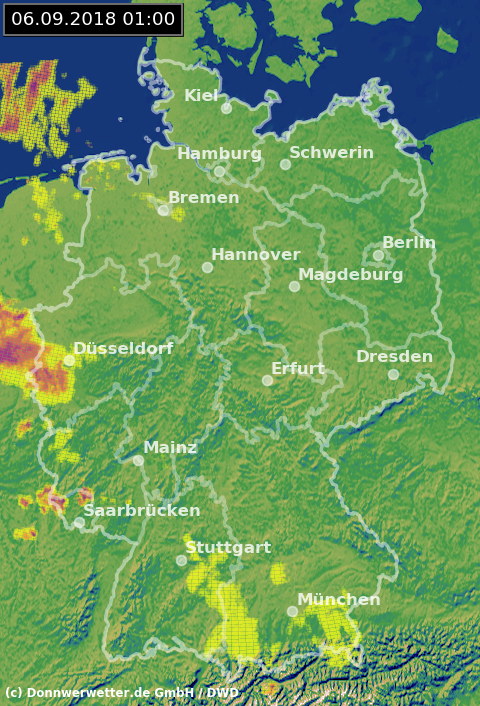 Am Freitag muss im Osten und im Süden noch mit Regenfällen, Schauern und einzelnen Gewittern gerechnet werden. Auch von Benelux ziehen neue Schauer in den Nordwesten herein. Die Niederschlagsmengen liegen dabei meistens zwischen 1 und 15 Liter pro Quadratmeter. Im übrigen Bereich bleibt es meistens trocken.