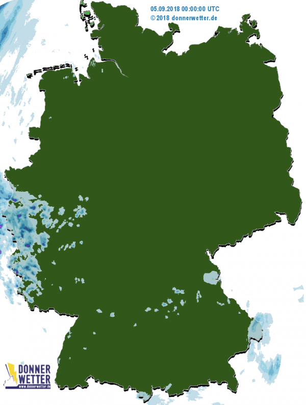 Das Radarbild zeigt aktuell ganz im Westen einige stärkere Schauersignale, vereinzelt blitzt und donnert es auch. Auch über der Nordsee erkennt man einige Schauercluster. Die anderen schwachen Signale ganz im Süden deuten jedoch nicht auf Niederschlag hin. Sonst präsentiert sich der Himmel über Deutschland häufig sternenklar, oder nur leicht bewölkt und nur im Westen teils wolkenverhangen. Vereinzelt haben sich in feuchter Luft Nebelfelder gebildet.