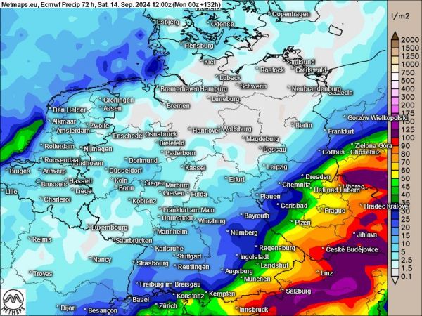 Das britische UKMO-Modell rechnet binnen 72 Studen mit Regenmengen von teilweise 200 l/m², ECMWF kommt in diesem Zeitraum "nur" auf 130-140 l/m². Die Unsicherheiten sind also noch groß.