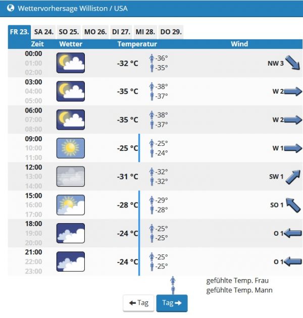 Extreme Kälte unter anderem in North Dakota
