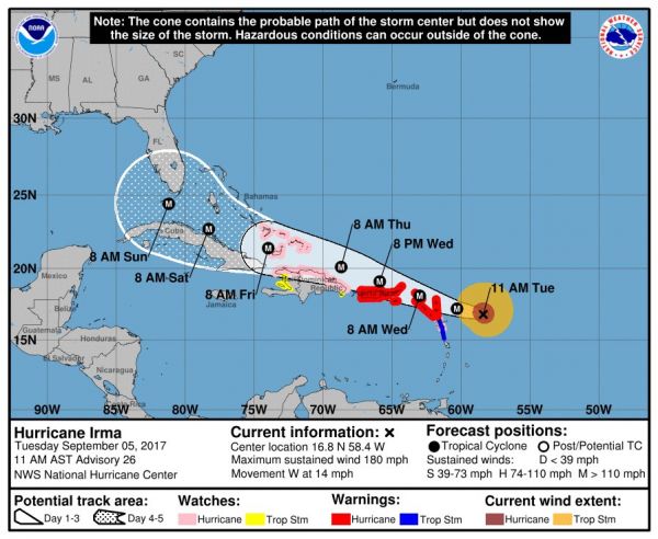 Voraussichtlicher Kurs von "Irma"