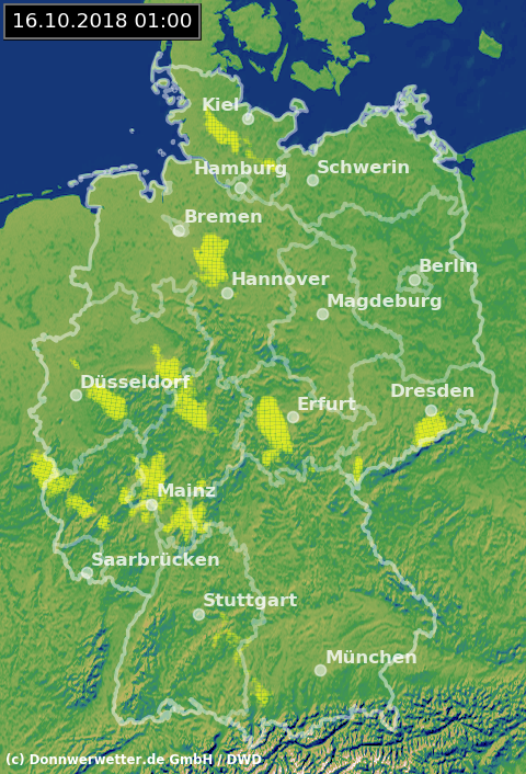 Tagesniederschlagssummen von Montag, 15.10.2018