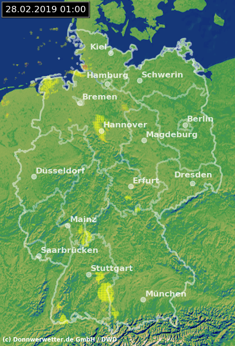 Radarbild von Donnerstag, 28.02.2019 um 01.00 Uhr