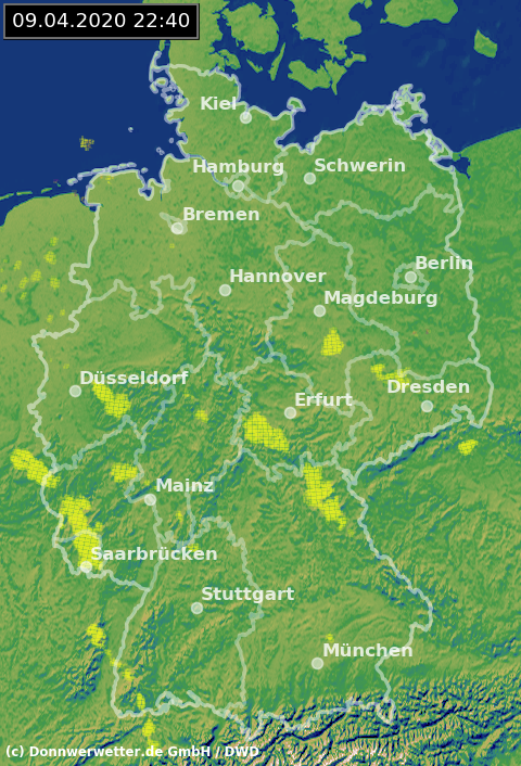 Radarbild von Donnerstag, 09.04.2020 um 22.40 Uhr